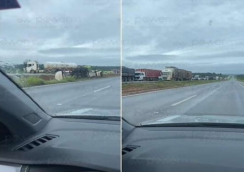 Tombamento de carreta-tanque bloqueia BR-163 em Nova Mutum – O MATO GROSSO