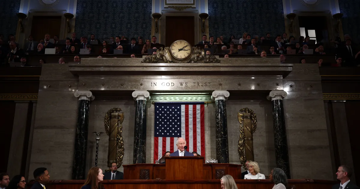 Em seguida, o rei fez um discurso perante a sessão conjunta do Congresso. Charles começou seu discurso fazendo referência ao ataque de sábado (25), no Jantar dos Correspondentes da Casa Branca, dizendo que tais atos violentos “nunca terão sucesso”.
