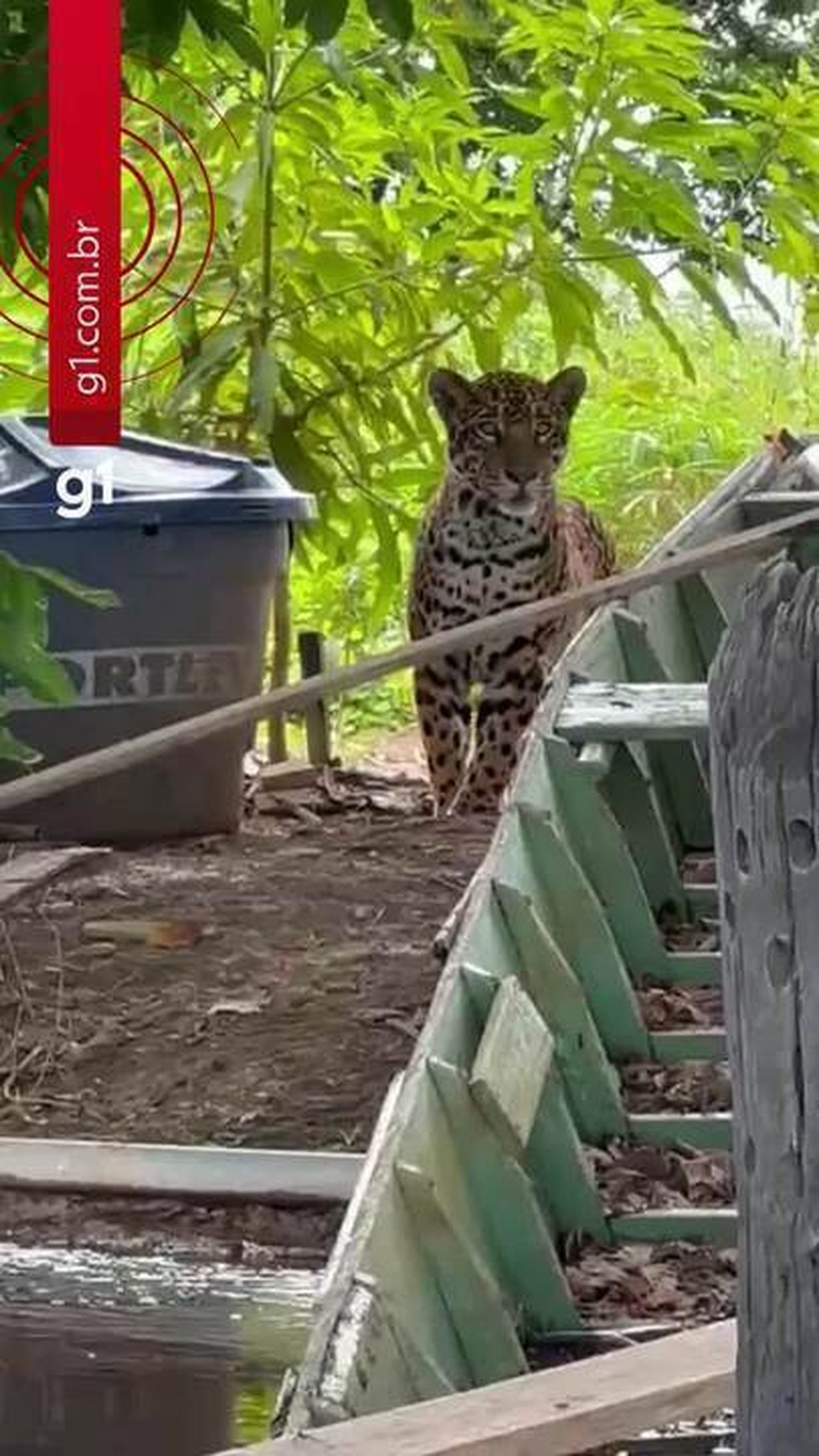 VÍDEO: pescador volta para casa e encontra onça-pintada próxima de barco em rancho de MT