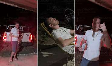 Nas imagens, registradas em uma chácara, o jovem aparece em clima de lazer ao lado de outras três pessoas. O grupo demonstra estar em um momento de convivência e descontração, sem qualquer indicativo do que ocorreria poucas horas depois.