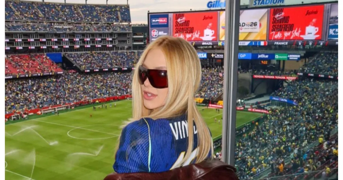 A influenciadora Virginia Fonseca, 26, foi ovacionada por parte da torcida brasileira após o fim do jogo do Brasil, que aconteceu em Boston, nos Estados Unidos, nesta sexta-feira (26).