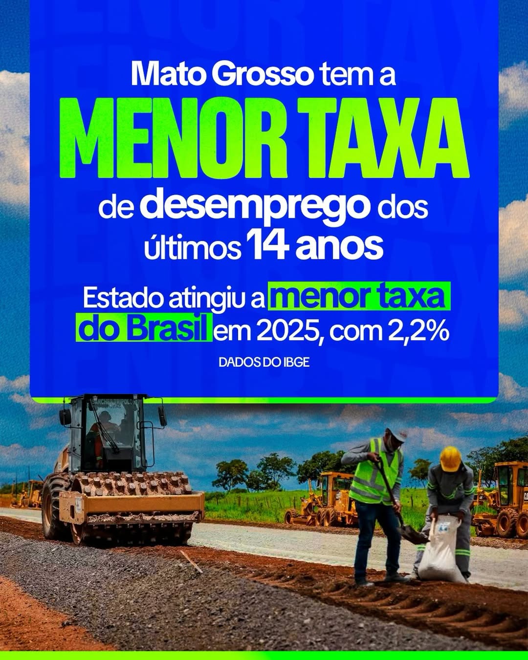👀 Você viu isso? Mato Grosso alcançou a menor taxa de desemprego dos últimos 14 anos!
